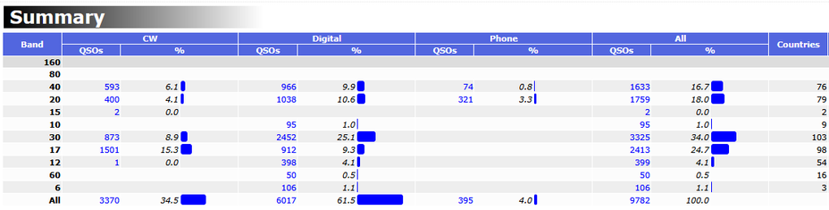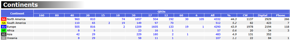 4U1UN - 2021 QSO Statistics 23 January - 18 December